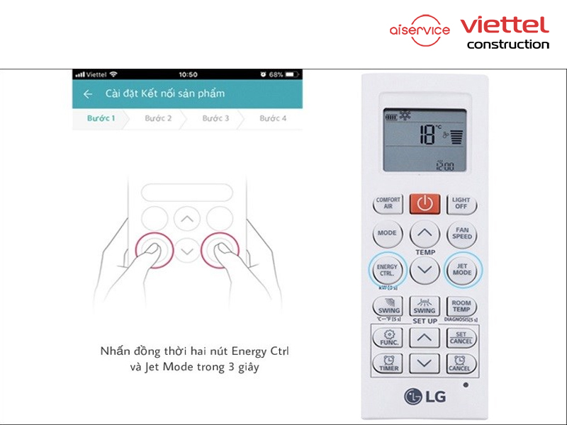 Bước 1: Trước tiên, bạn cần ấn đồng thời cùng lúc 2 phím Energy Ctrl và Jet mode trong 3 giây cho đến khi điều hòa phát ra tiếng bíp và dàn lạnh xuất hiện biểu tượng wifi nhấp nháy.